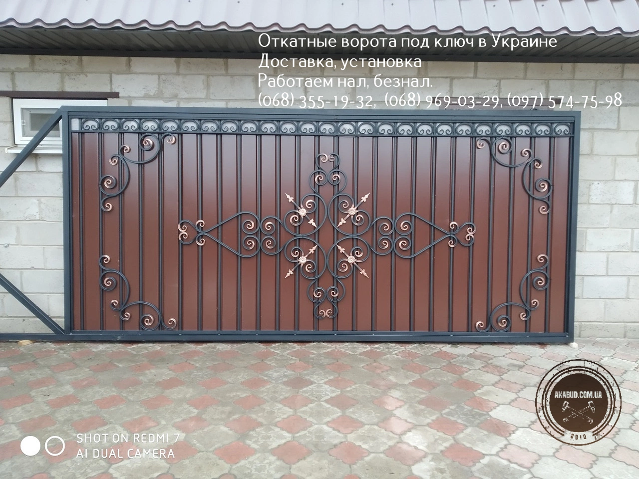 Ворота откатные профнастилом С-15. Покраска: Кузнечная краска CERTA-PLAST. Цвет каркаса: черный.